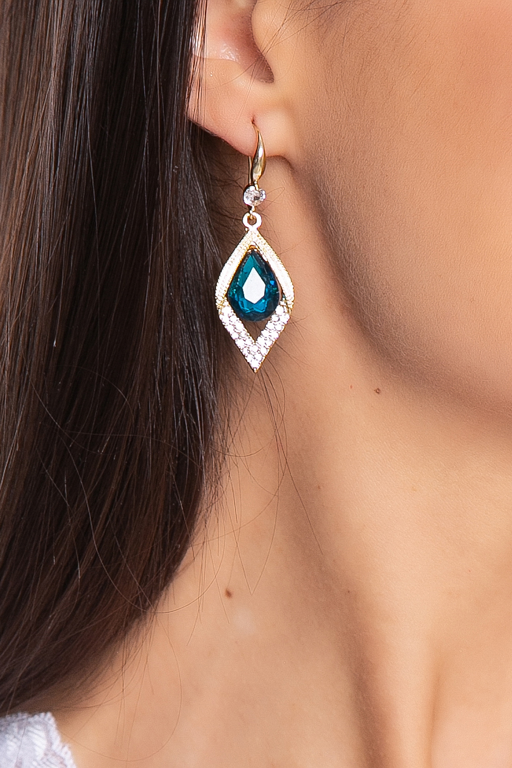 - Тип товара: серьги-подвески с камнем и кристаллами;