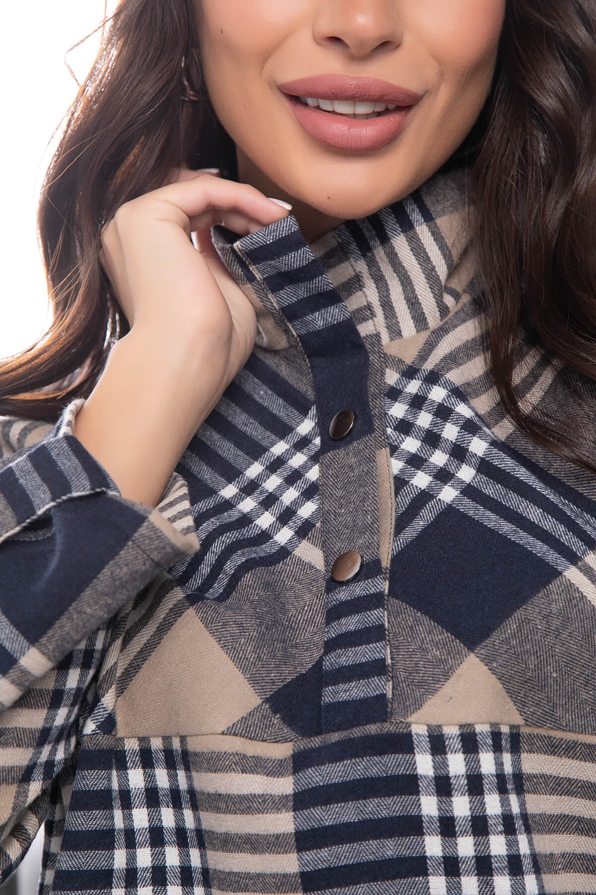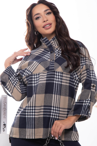 Рубашка в клетку с укороченным рукавом - отличный вариант для повседневного образа. Дополните образ светлыми брюками или любимыми джинсами. Рубашка свободного кроя оснащена воротником стойкой на кнопках. Линия плеча спущена, рукав три четверти. По бокам есть небольшие разрезы, спинка удлинена.