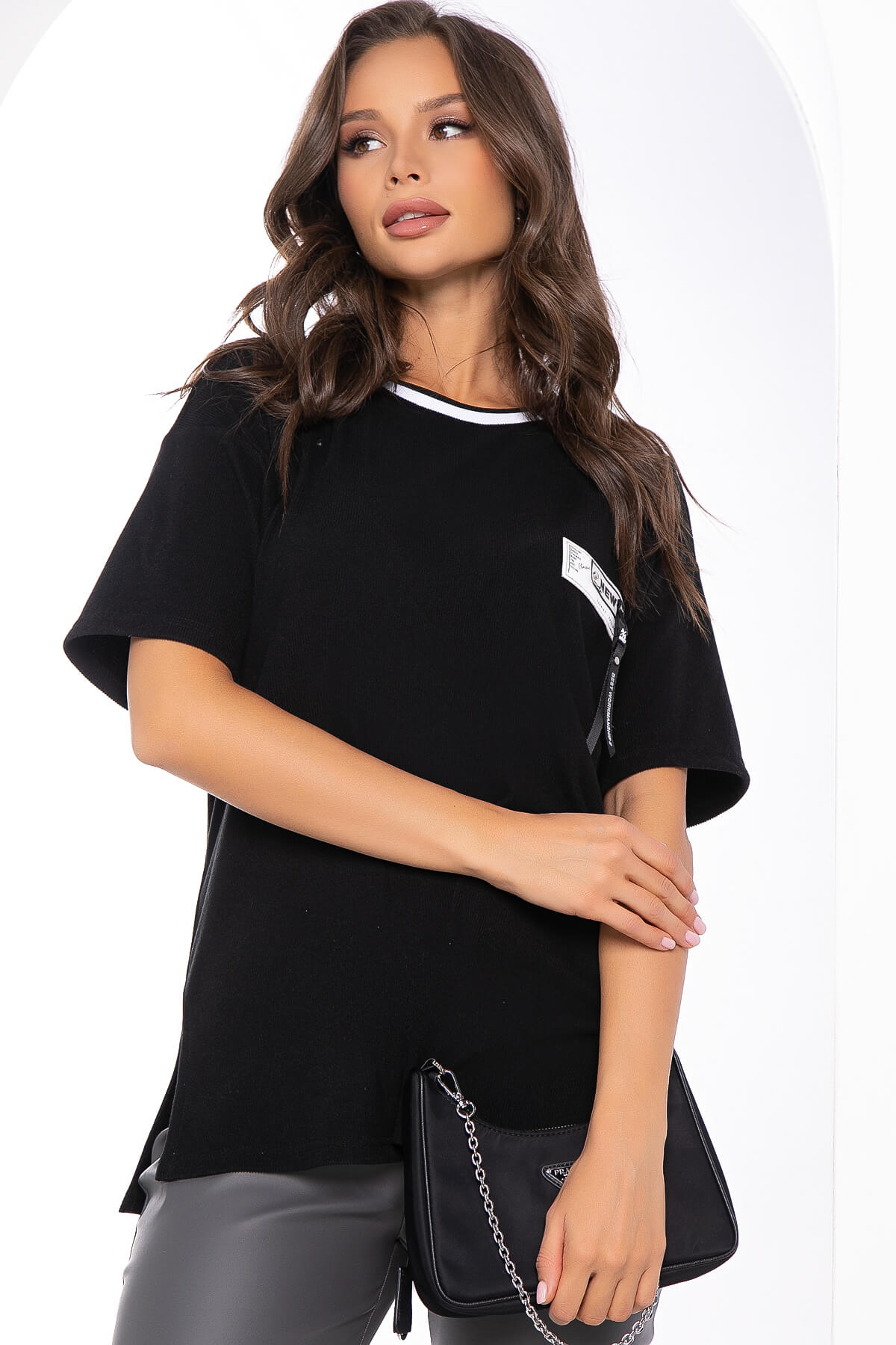 Футболка из трикотажа "Лапша" идеальный вариант на каждый день! Изделие украшает нашивка спереди на груди. Рукав укороченный, со спущенным плечевым швом. Идеально смотрится с джинсами, брюками. Акцентный воротник придает особый шарм!