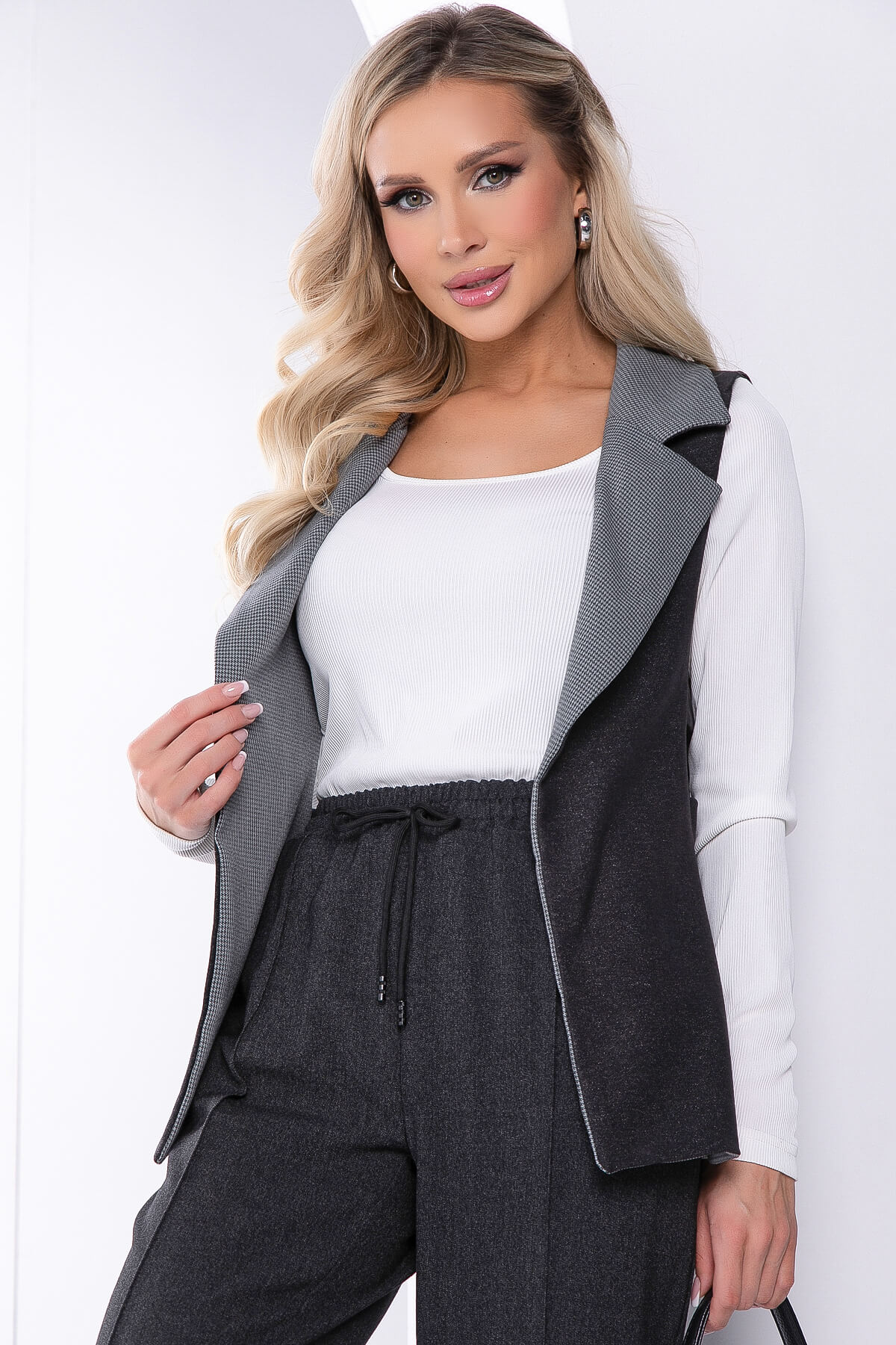 Элегантный костюм состоящий из жилета и брюк. Жилет из костюмной ткани - модный тренд нескольких сезонов подряд. С ним легко можно создавать гармоничные многослойные образы и сочетать его с огромным количеством вещей из Вашего гардероба, будь то платье, классические брюки или джинсы. Отложной английский воротник, формирует V-образный вырез. Удобные брюки с резинкой по талии.