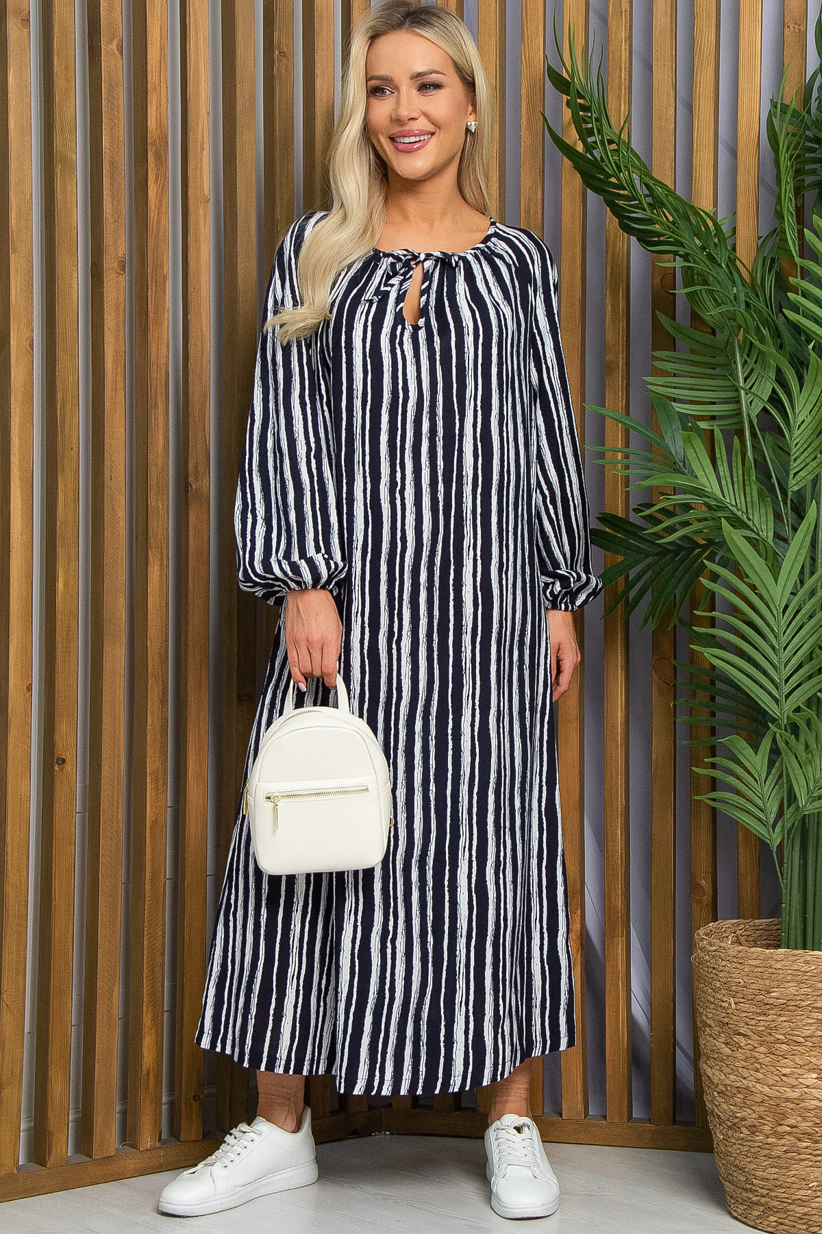 Это прекрасное платье поможет вам выглядеть стильно и элегантно в любой ситуации. Изготовленное из натурального и дышащего материала, этот женский повседневный наряд идеально подходит для лета. Легкое платье в стиле «бохо» с длинными рукавами на резинке. Свободный крой платья больших размеров обеспечивает комфорт и свободу движений. Благодаря своему универсальному дизайну, платье подходит как для повседневного ношения, так и для особых случаев, включая вечерние мероприятия и торжества.