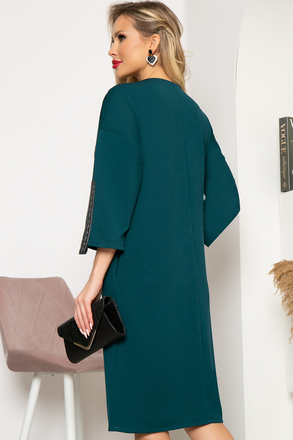 Платье-туника в стиле oversize подойдёт для создания комфортного повседневного образа. По передней части платья выполнена аппликация, благодаря которой эту модель можно использовать для создания вечернего образа. Платье свободного кроя, средней длины, линия плеча спущена.