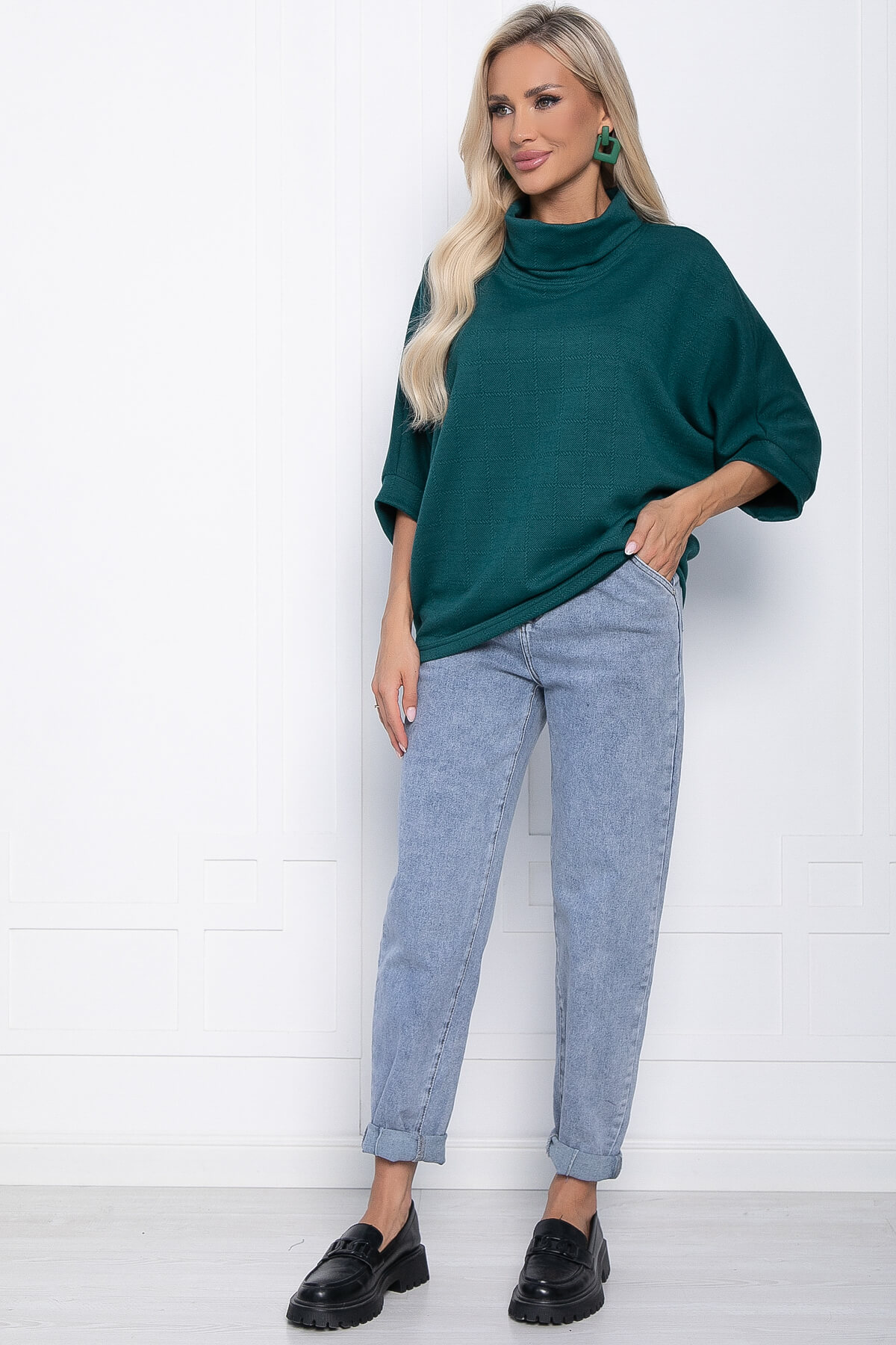 Самые непредсказуемые ансамбли и живописные образы позволяет создать джемпер, вписывающийся в самые разнообразные стили. Удобное, практичное, функциональное изделие позволит сочетать его с разнообразным низом, а мягкий трикотаж подарит комфорт в прохладную погоду. Джемпер имеет акцентную горловину, а рукава скроены по типу «Летучая мышь». Свободный крой позволит скрыть недостатки фигуры.