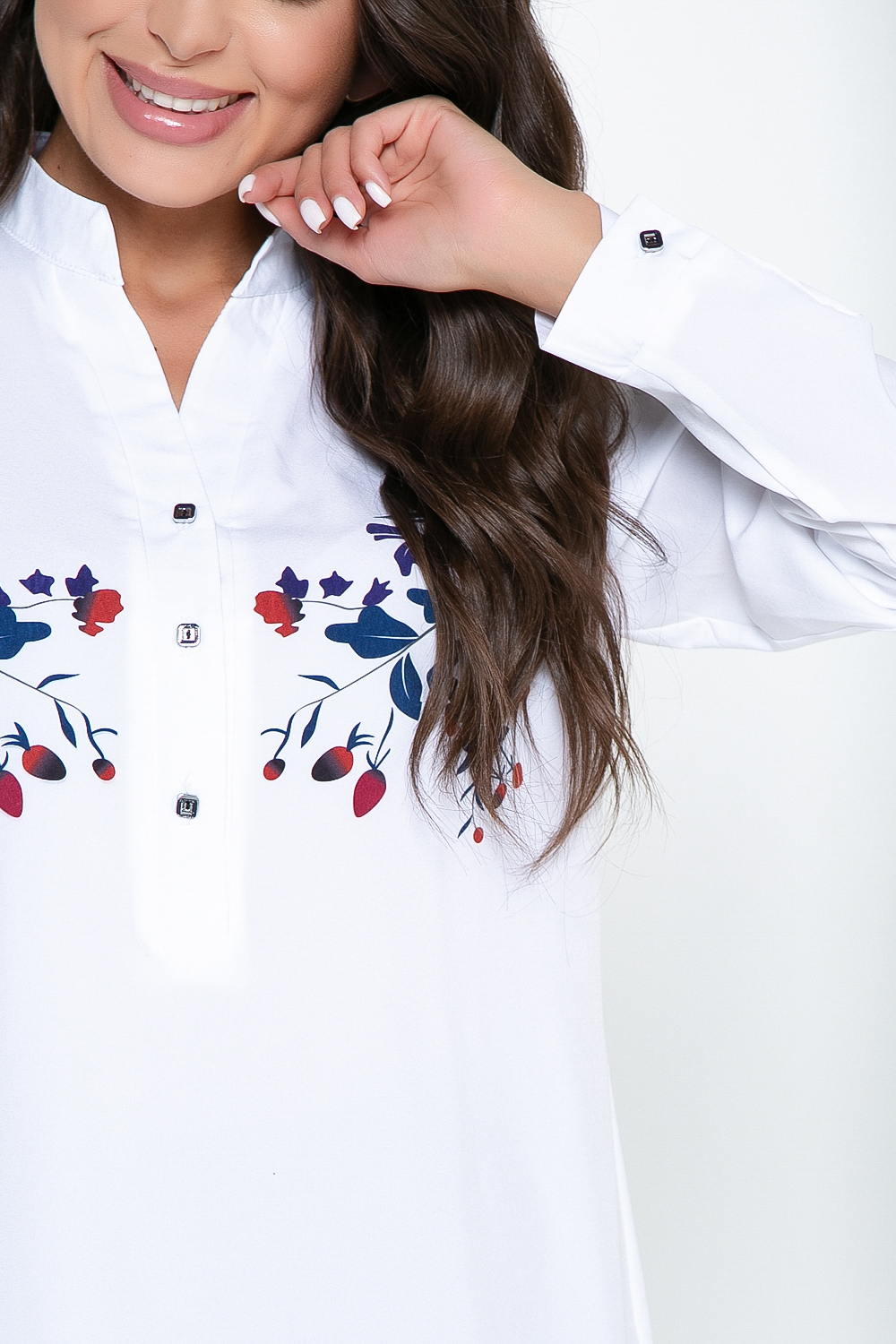 - Изюминка блузы - красочное нанесение по рукаву и груди;