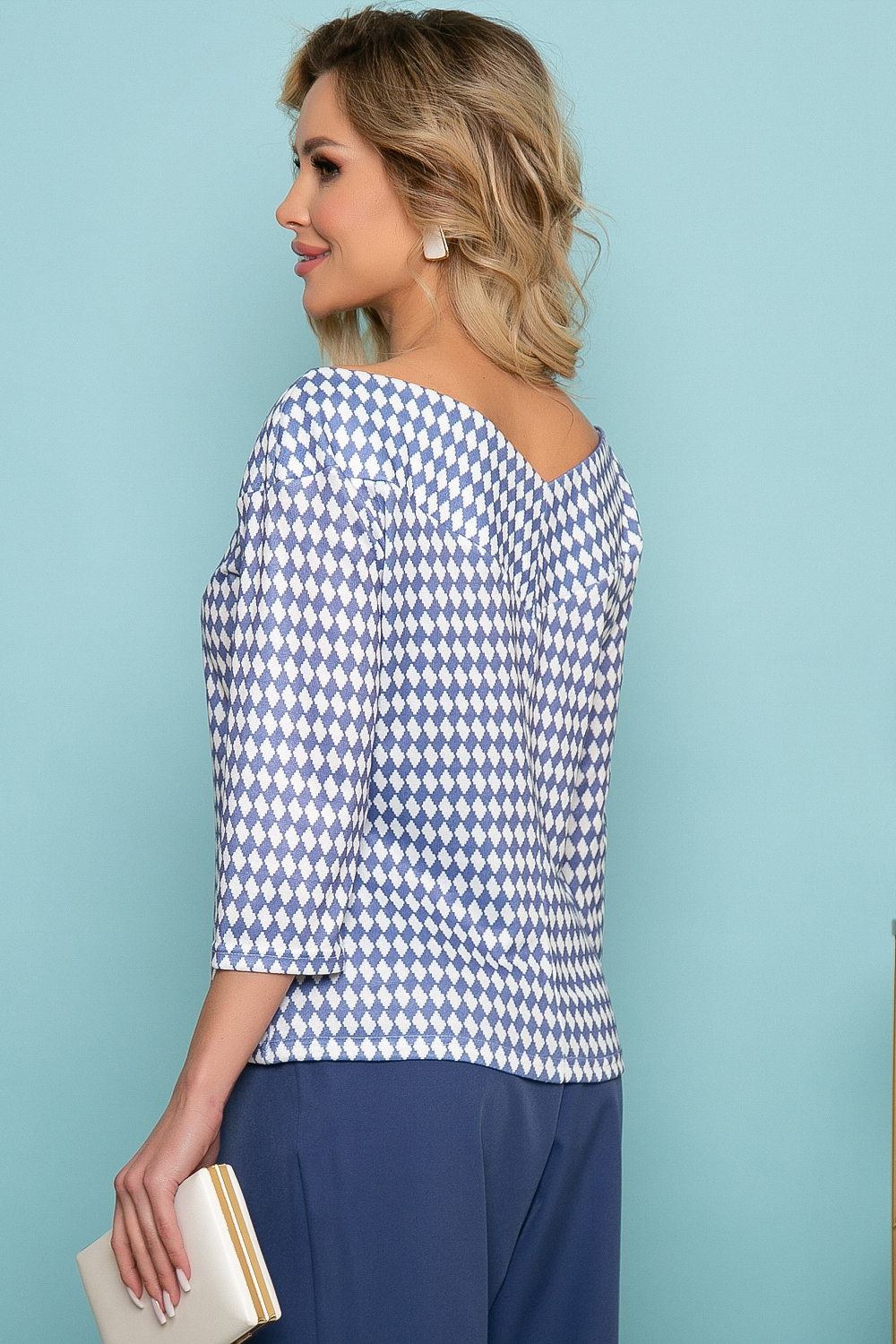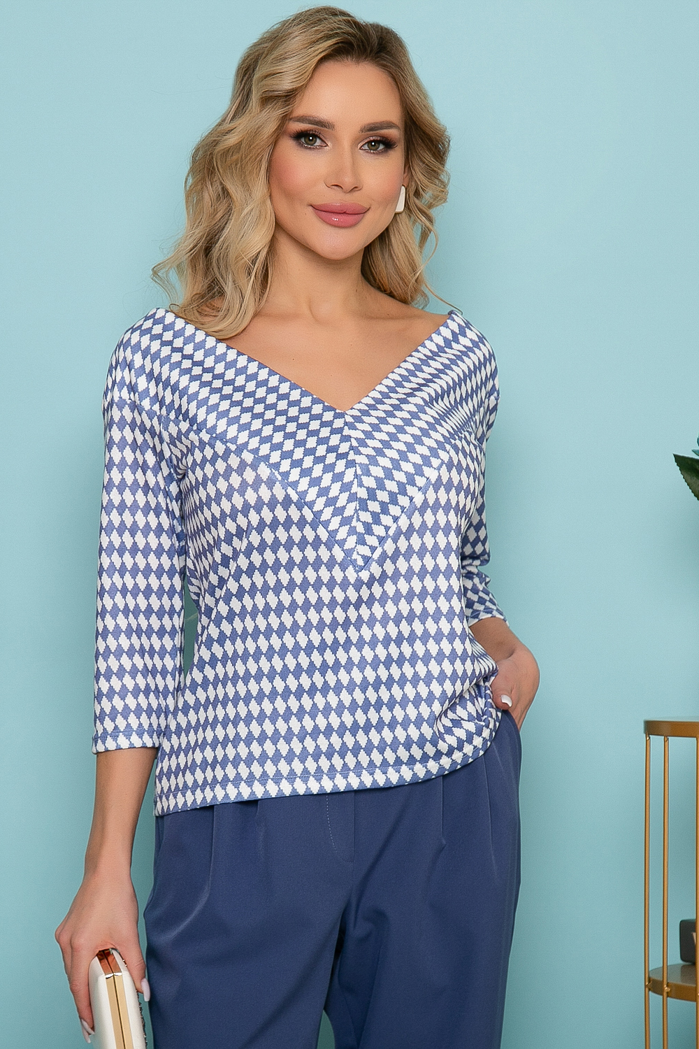 Стильный и оригинальный джемпер из мягкого трикотажа придаст оригинальность любому образу! Джемпер полуприталенного кроя с акцентной горловиной. По переду и спинке красивый V-образный вырез. Рукав втачной, три четверти, плечевой шов спущен. Спинка разрезная.