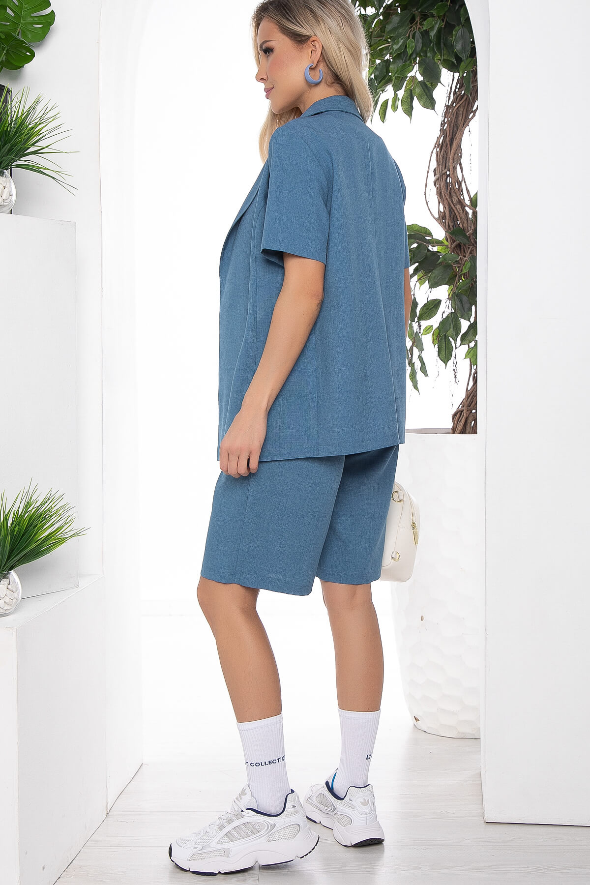 Настало время легких костюмов! На пике популярности в этом сезоне комплект из свободного жакета и прямых шорт. Жакет свободного кроя с поясом из основной ткани, который входит в комплект. Рукав укороченный, втачной. Шорты классические на резинке.