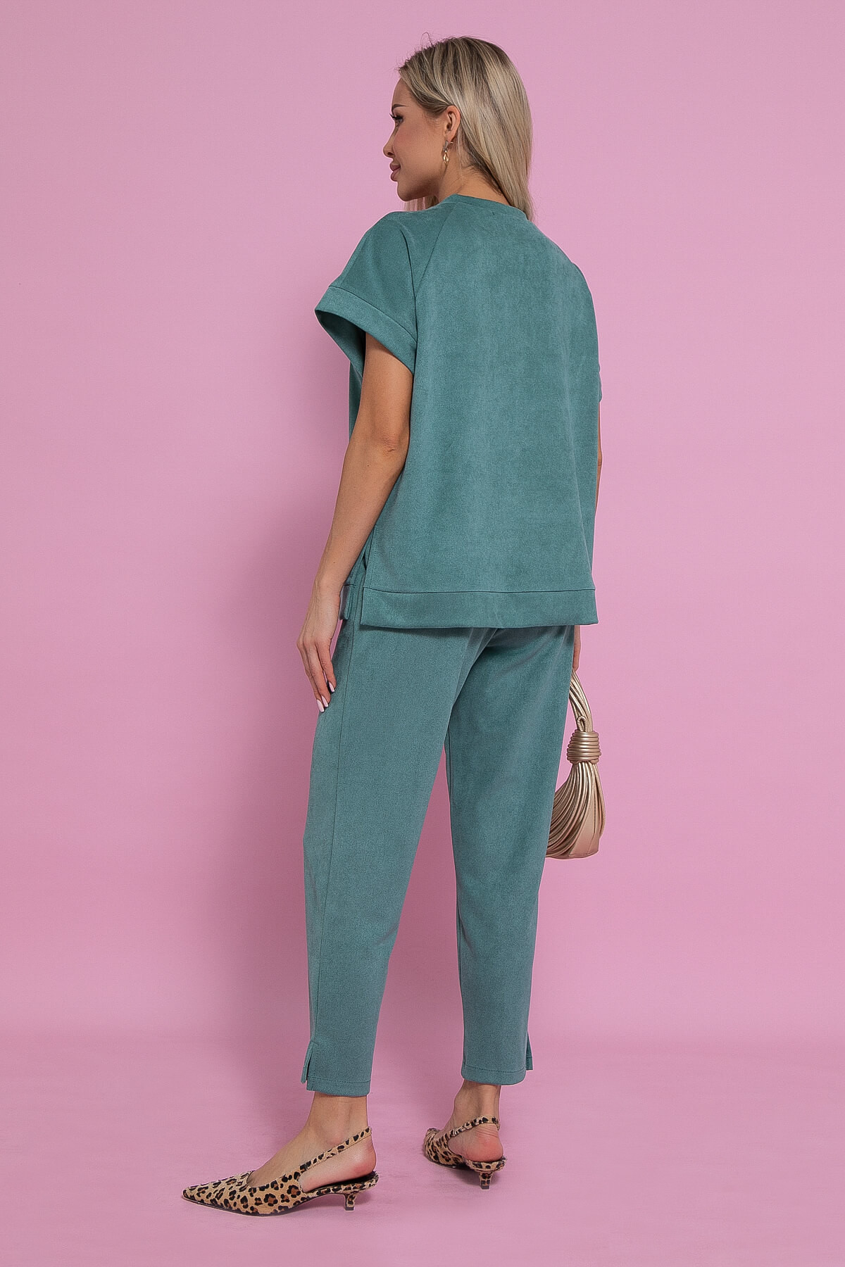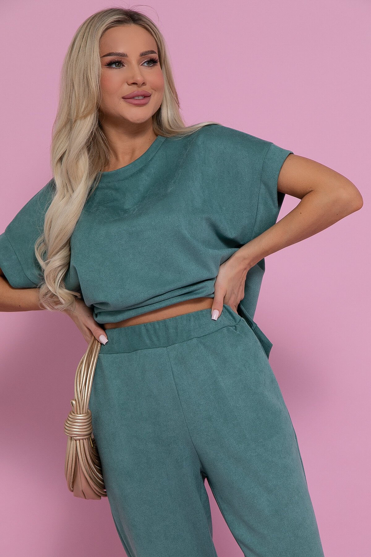 Брючный женский комплект — это прекрасный выбор для тех, кто ценит комфорт и стиль в одежде. Он отлично подходит как для повседневной носки, а также станет отличным дополнением к вашему домашнему гардеробу. Костюм состоит из блузы прямого силуэта и укороченных брюк. Рукав блузы цельнокроеный, с манжетой. Верх заканчивается на поясе с разрезами по бокам. Брюки заужены к низу, с функциональными карманами и разрезами по бокам снизу. Каждый элемент костюма можно носить отдельно, комбинируя с другими вещами из вашего гардероба. Он идеально смотрится как с туфлями, так и с кроссовками.