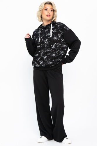 Погрузитесь в комфорт и стиль с нашим элегантным черным костюмом, идеально подходящим для повседневного использования. Комплект включает в себя джемпер с воротником, который отличается манжетами внизу и удобным накладным карманом «кенгуру» для хранения мелочей. Длинные рукава на манжетах обеспечивают дополнительное удобство и защиту от холода. Брюки имеют прямой крой и резинку в поясе, что гарантирует идеальную посадку и свободу движений. Этот костюм станет отличным выбором для активных дней, прогулок или встреч с друзьями. Создайте стильный образ, сочетая комфорт и современный дизайн!