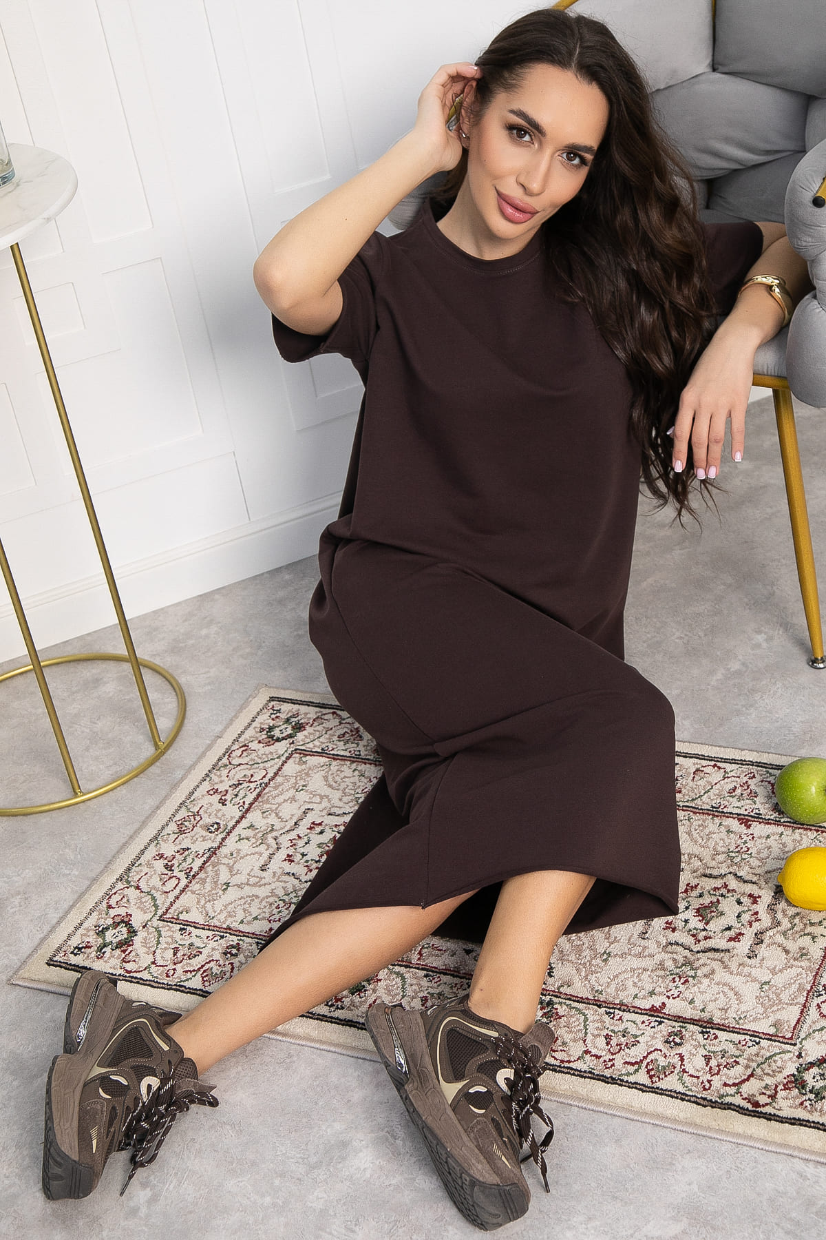 Создайте стильный и удобный образ на каждый день с нашим трикотажным платьем-футболкой. Это идеальный выбор для тех, кто ценит комфорт и современный стиль. Свободный крой подходит для всех типов фигур и обеспечивает свободу движений. Платье отлично подходит для беременных. Необработанные края добавляют ему особый шарм. Удобный разрез сзади добавляет образу динамичности. В этом платье вы будете выглядеть стильно и чувствовать себя комфортно в любых ситуациях.