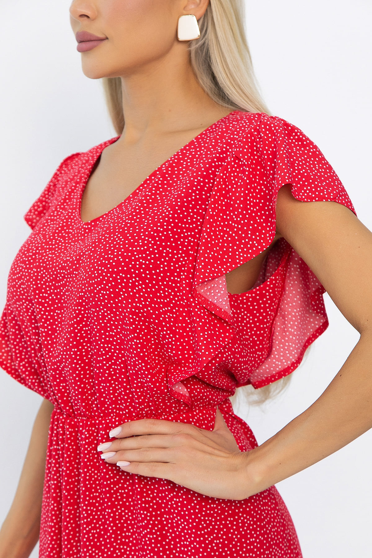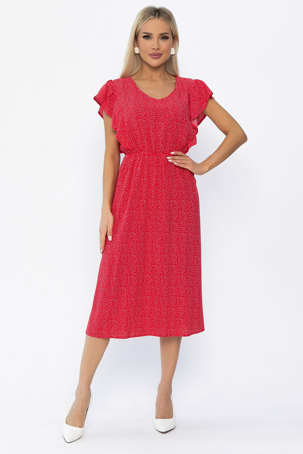 Очаровательное платье в красном цвете идеально подойдет для летних дней и теплых вечеров. Его приталенный крой и женственные детали подчеркивают индивидуальность, создавая ощущение комфорта. V-образный вырез акцентирует внимание на шее, а рукава-крылышки добавляют образу легкости и романтики. Резинка по талии подчеркивает фигуру. Юбка А-силуэта создает женственный и изящный силуэт. Это универсальное платье, которое подчеркнет вашу уникальность и добавит элегантности в любой образ.