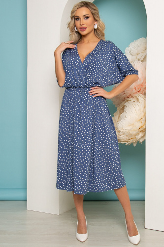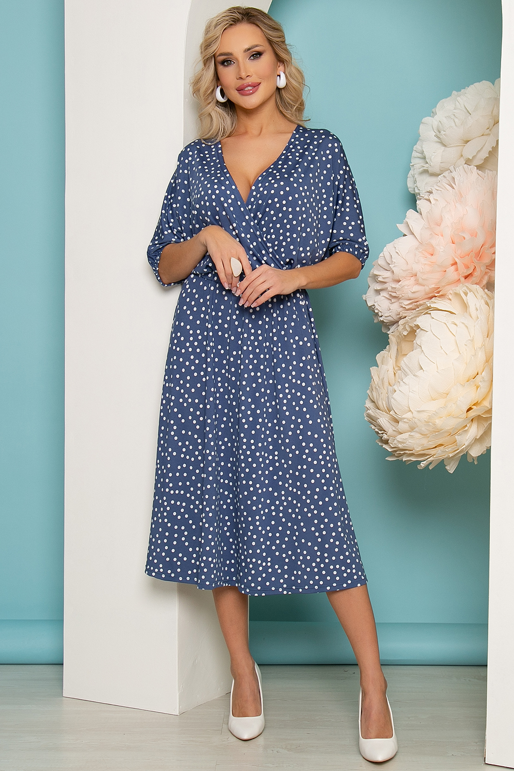 Невероятное платье, собравшее в себе все элементы женственного кроя: длина миди, струящаяся ткань, горошек... Всё это позволит создать неповторимый образ! Рукав цельнокроенный, короткий, низ на резинке. Пройма - "Летучая мышь". Талия на резинке.