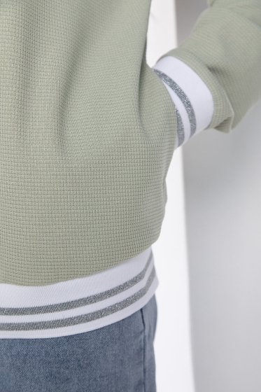 Куртка-бомбер - идеальный вариант для прохладной погоды! Когда на улице ветрено, надевайте под него лонгслив, если тепло майку или футболку. Рукав длинный, втачной, по переду застежка-молния, в боковых швах есть карманы. Без воротника, манжеты и притачной пояс по низу выполнен из трикотажной резинки. Бомбер без подкладки.